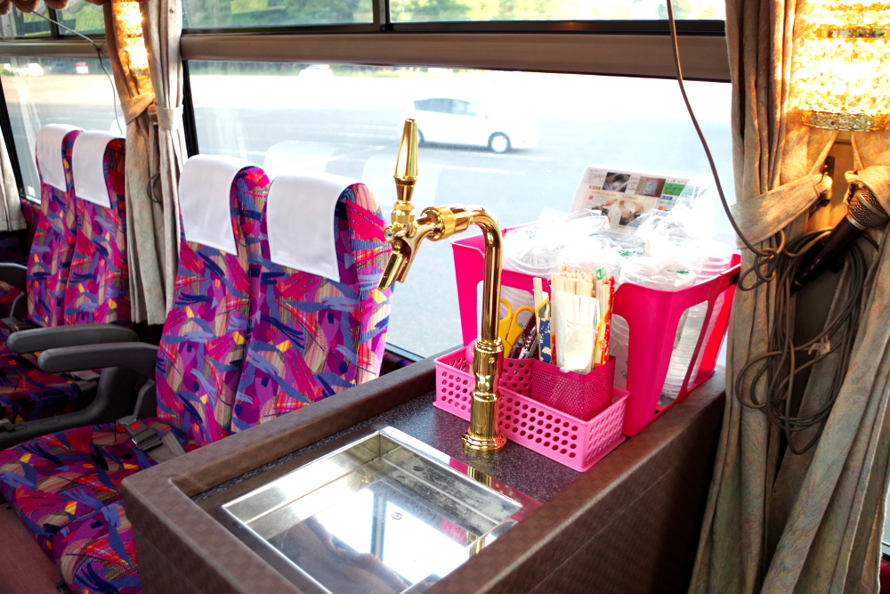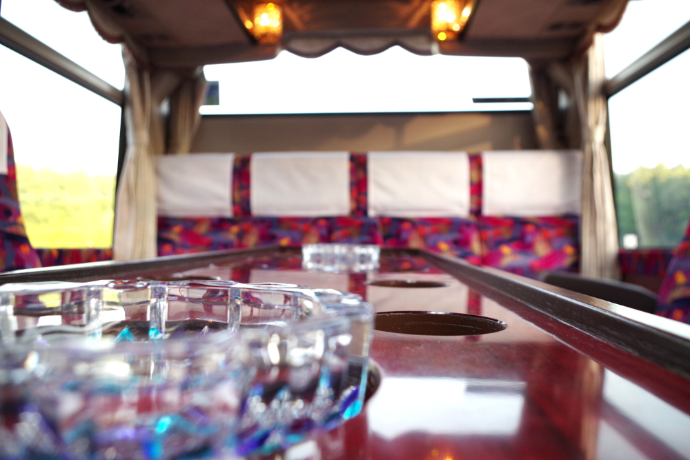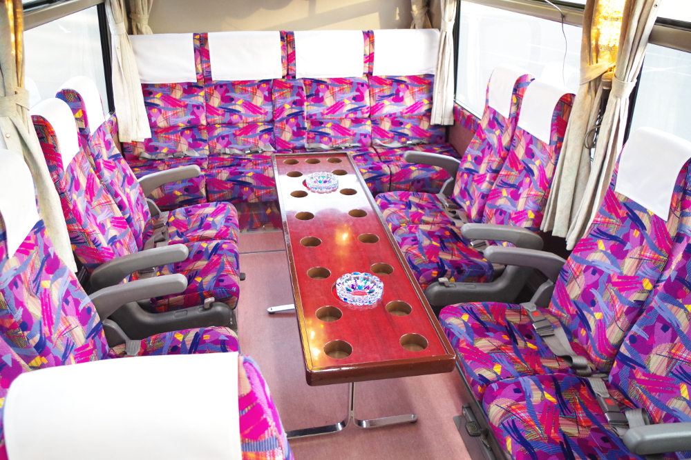 Short type car with luxry passanger room with draft beer server. Enjoy your travel on comfortable salon sheet. The car equipped Digital Tachograph System and Drive Recorder