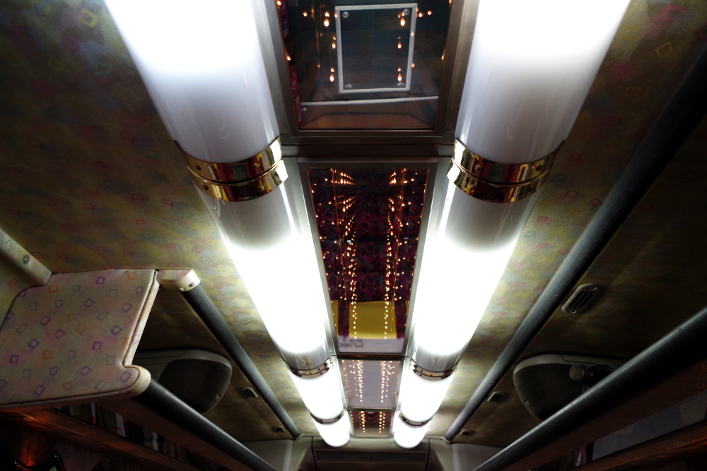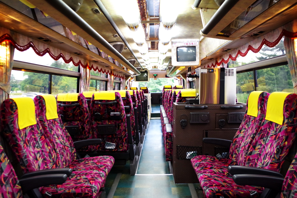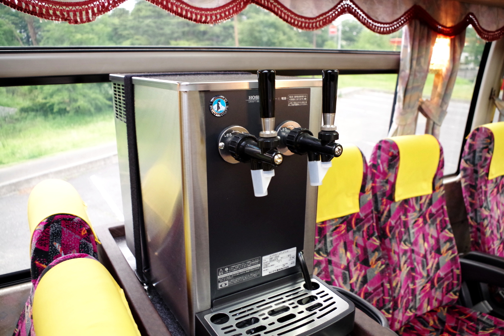 Semi-double decker tourist bus with luxry passenger room and draft beer server. You can see wonderful front sight view with high quality draft beer(additional charge required). The car equiped Digital Tachograph System and drive recorder.
